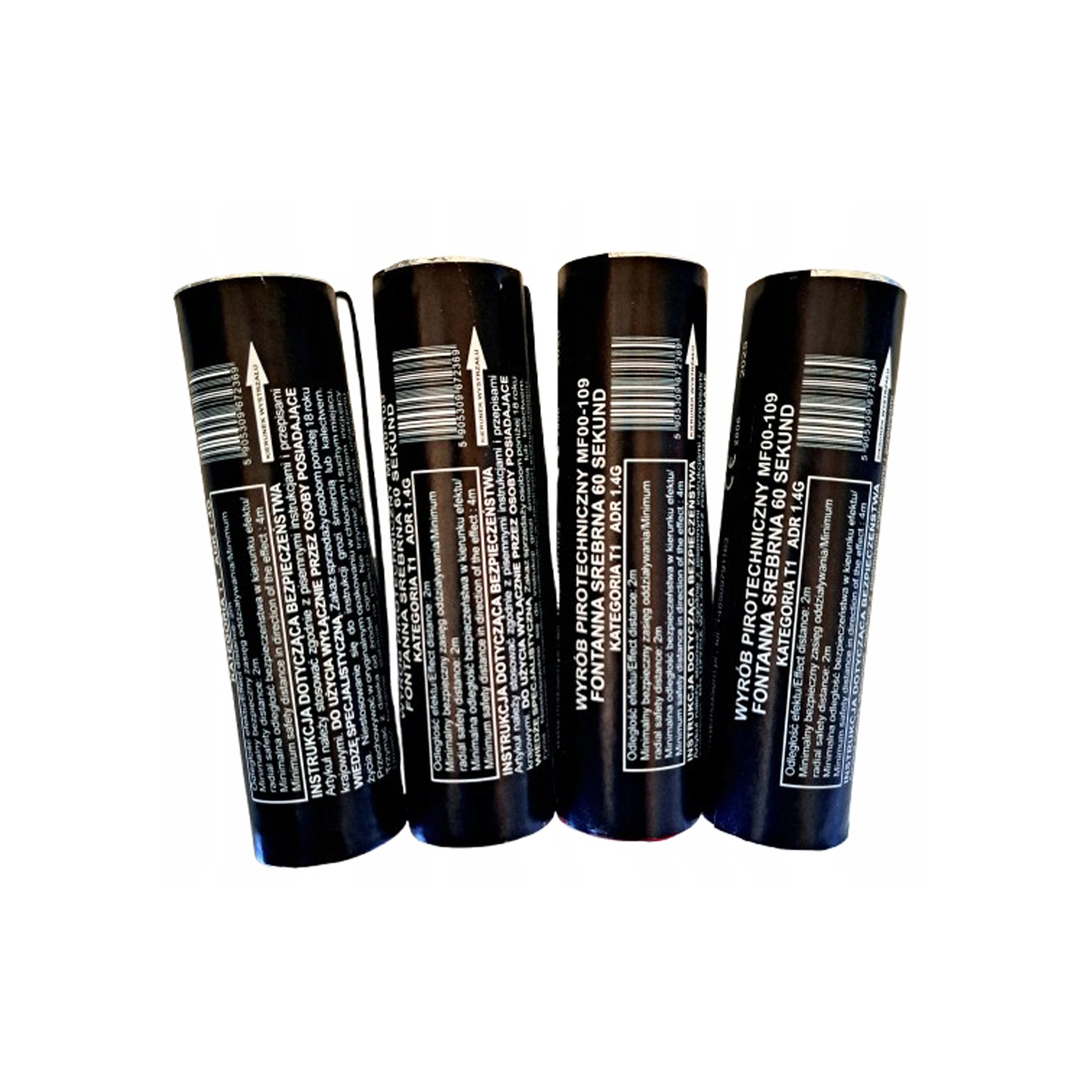 W zestawie znajdują się cztery fontanny, które można odpalić za pomocą systemu zapłonowego lub baterii 9V (nie dołączono do zestawu). Produkt został zatwierdzony certyfikatem CE, co potwierdza jego bezpieczeństwo i jakość.