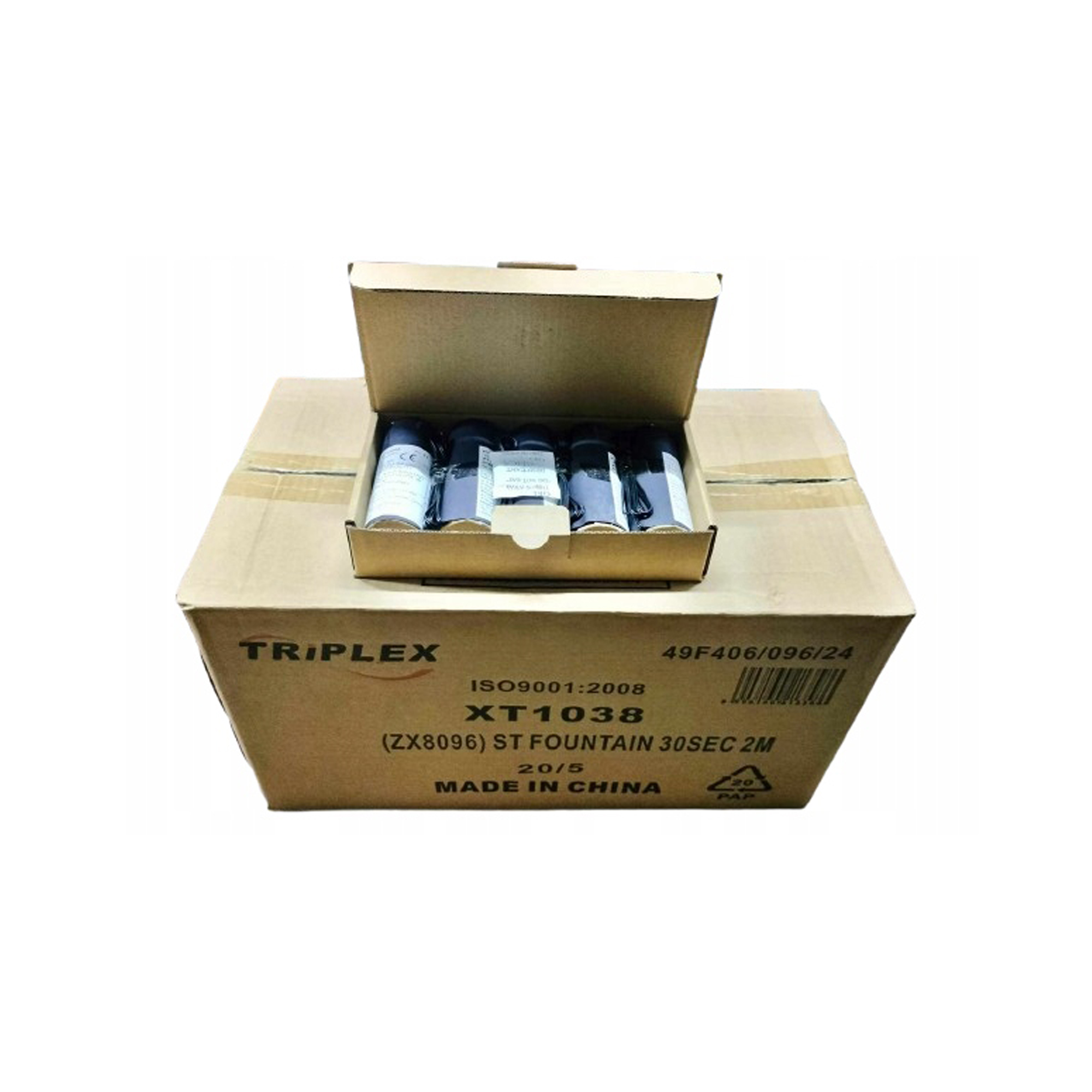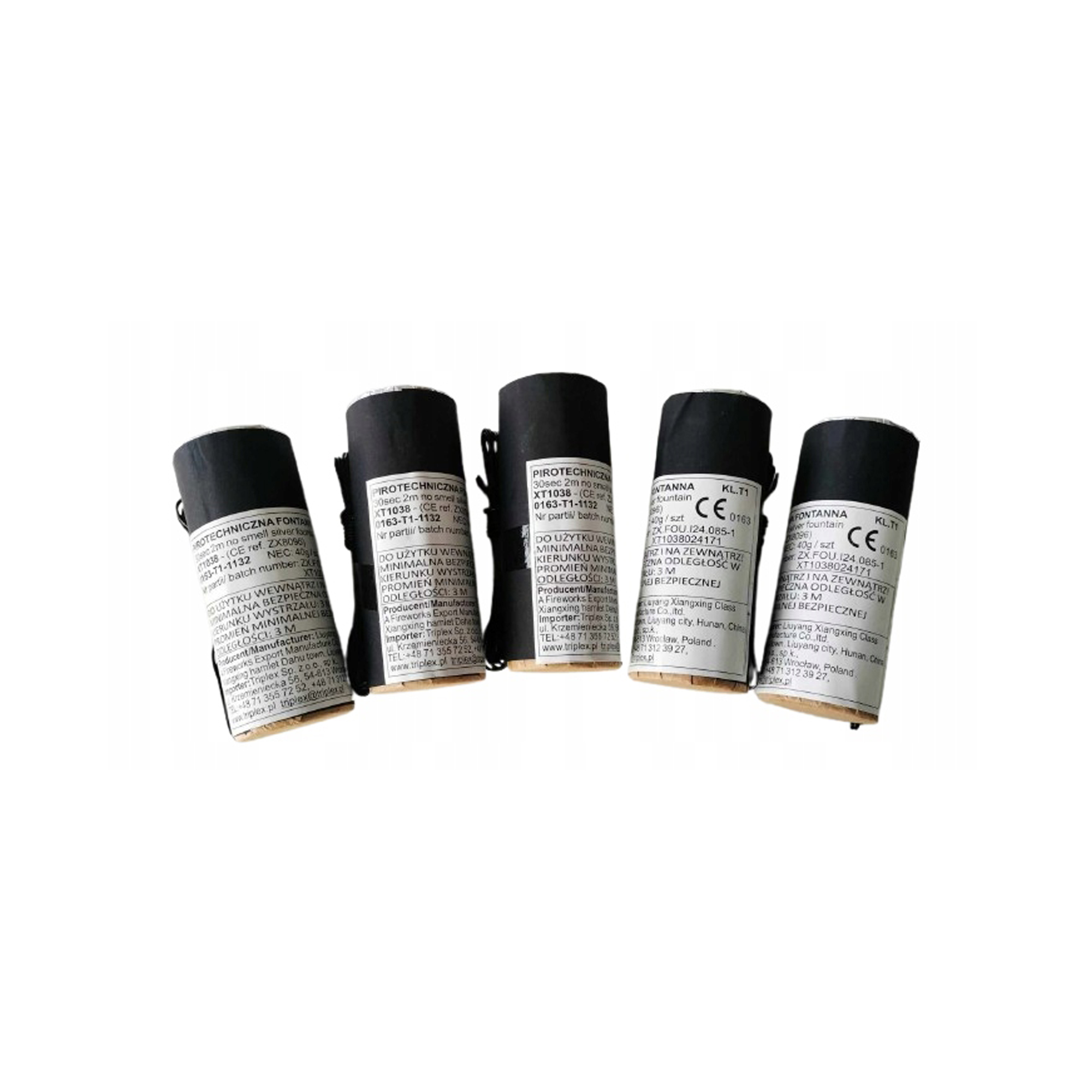 Profesjonalne fontanny wewnętrzne TRIPLEX XT1038 o czasie działania 30 sekund. Idealne na eventy, wesela i występy sceniczne. W kartonie znajduje się 100 sztuk. Produkt posiada certyfikat CE, kategorię T1 oraz możliwość odpalania systemem lub baterią 9V.