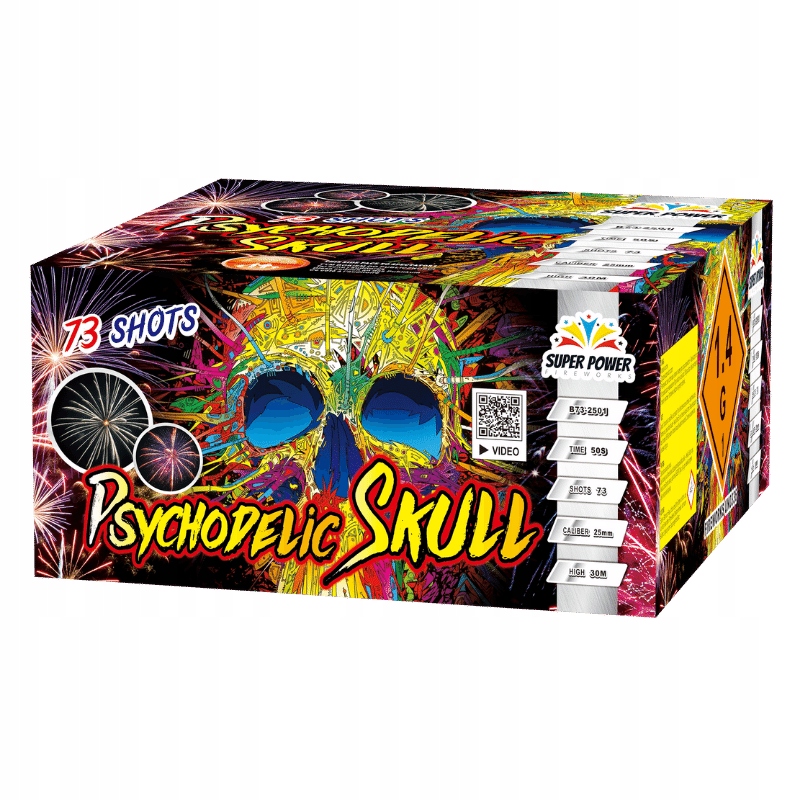 Ogromna Bateria w mocnym kartonowym pudełku. Stabilna ,,Kostka,, została specjalnie przygotowana z różnymi seriami efektów i kolorów. Miks efektów kolorystycznych powoduje, że jest to jedna z lepszych kątowych baterii.
