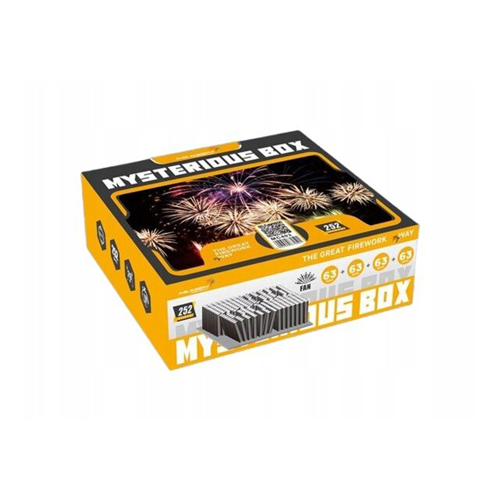 Pokaz fajerwerków MYSTERIOUS BOX to 252 strzały, kaliber 20 mm, oferująca 110 sekund intensywnego, kolorowego pokazu z fontanną. Idealna na wesela, sylwestra i wyjątkowe okazje.