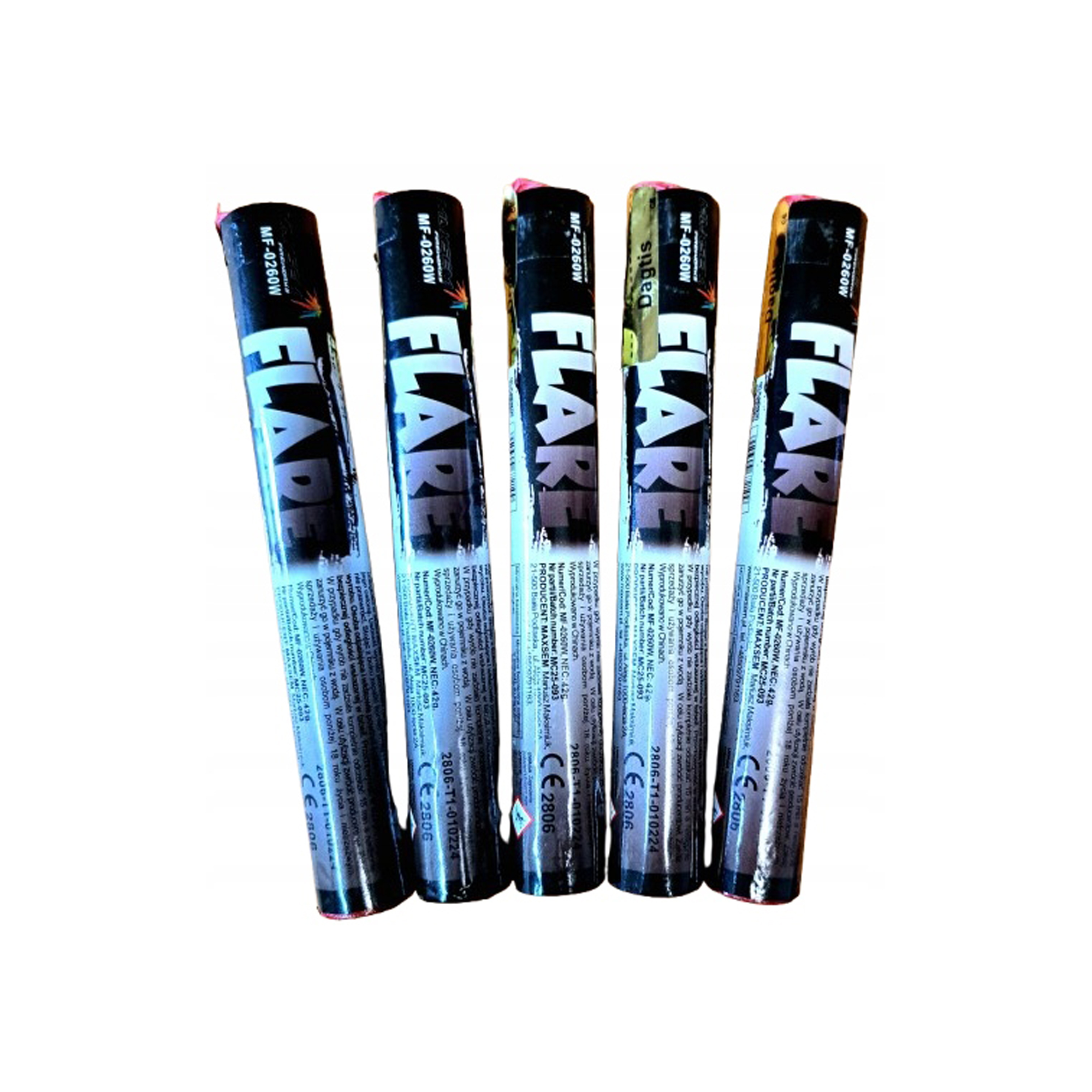 Produkt pochodzi od renomowanego importera Maxsem, znanego z wysokiej jakości pirotechniki użytkowej. Każda raca posiada certyfikat bezpieczeństwa CE oraz należy do kategorii T1, co oznacza, że może być stosowana w celach technicznych i widowiskowych przez osoby dorosłe. Klasa ADR 1.4G gwarantuje bezpieczny transport i magazynowanie. Dzięki solidnej konstrukcji i mocnemu efektowi świetlnemu, flary MF-0260B są doskonałym wyborem dla fotografów, kibiców i organizatorów pokazów.