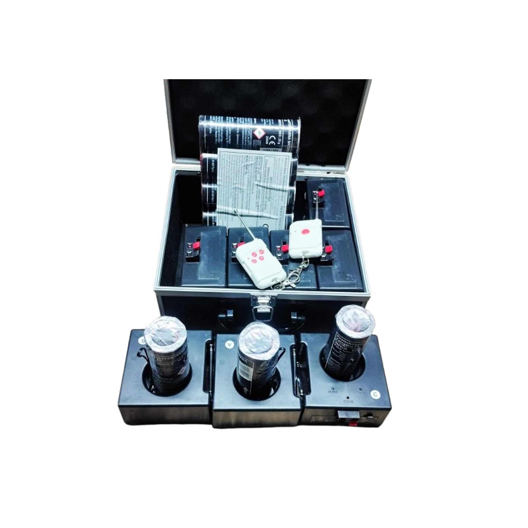 Profesjonalny system do odpalania fajerwerków i fontann z 8 kanałami, dwoma pilotami, zasięgiem do 50 m oraz wygodnym zasilaniem na baterie AA. Idealny na wesela, pierwszy taniec, tort i mniejsze pokazy.